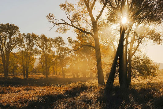 Sunrise through cottonwood trees-Grand Teton National Park-Wyoming White Modern Wood Framed Art Print with Double Matting by Jones, Adam