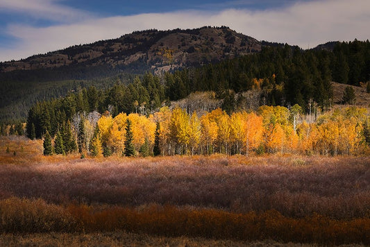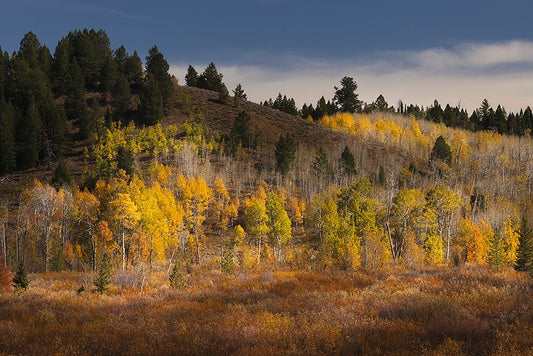 Autumn view of willows and aspen groves-Grand Teton National Park-Wyoming White Modern Wood Framed Art Print with Double Matting by Jones, Adam