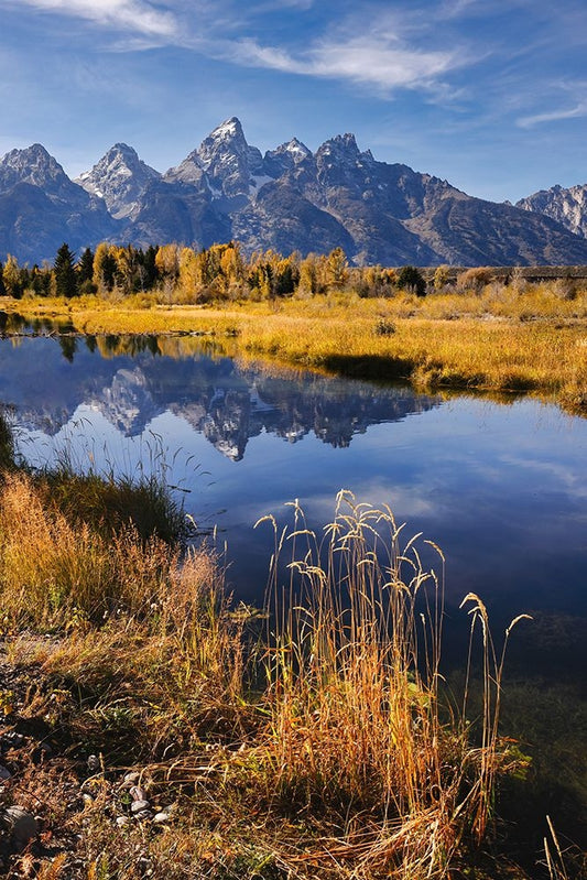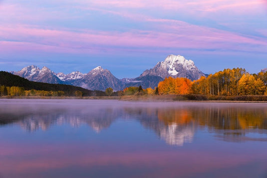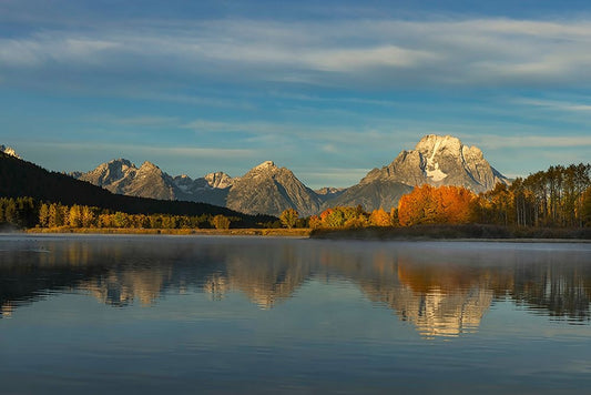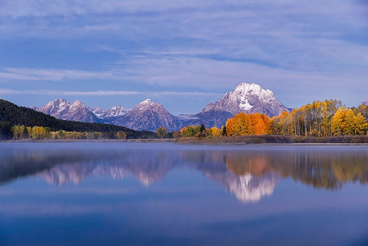 Tranquil autumn scene along Snake River-Grand Teton National Park-Wyoming White Modern Wood Framed Art Print with Double Matting by Jones, Adam