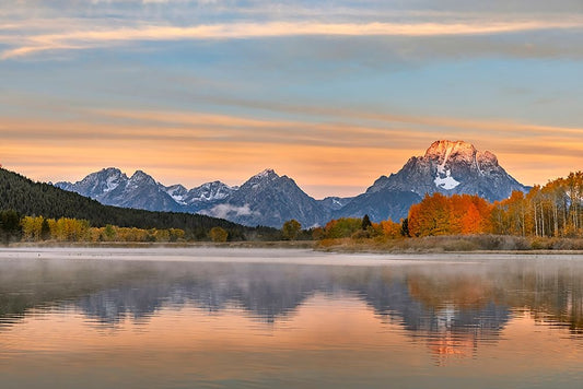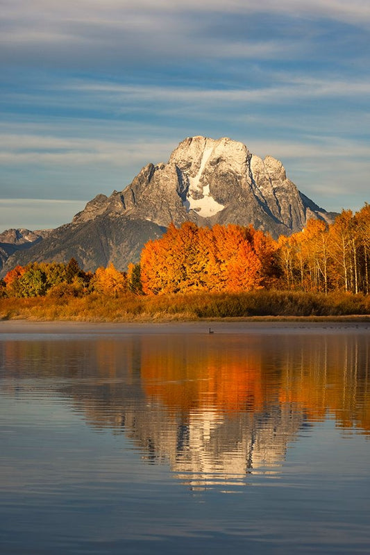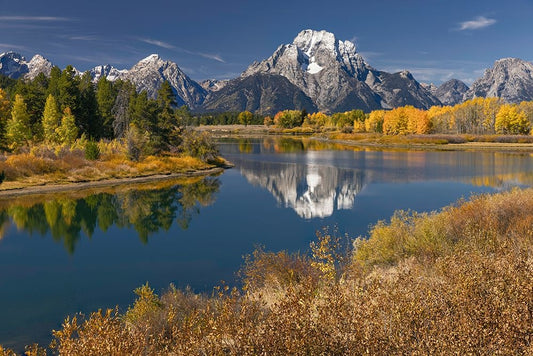 Autumn view of Mount Moran and Snake River-Grand Teton National Park-Wyoming White Modern Wood Framed Art Print with Double Matting by Jones, Adam
