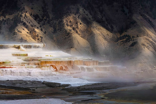 Colorful terrace-Canary Spring-Mammoth Hot Springs-Yellowstone National Park-Wyoming White Modern Wood Framed Art Print with Double Matting by Jones, Adam
