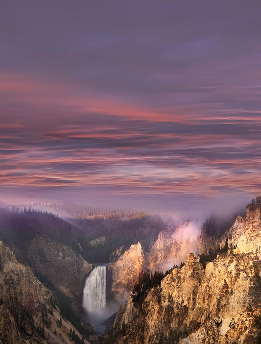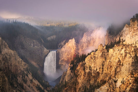 Lower Falls at sunrise from Artist Point-Yellowstone National Park-Wyoming White Modern Wood Framed Art Print with Double Matting by Jones, Adam