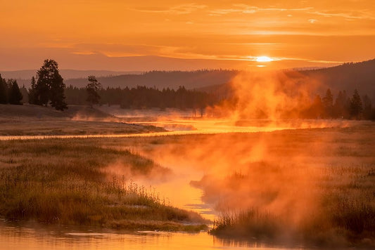 Madison River at sunrise-Yellowstone National Park-Wyoming White Modern Wood Framed Art Print with Double Matting by Jones, Adam