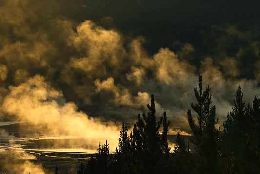 Yellowstone River at sunrise from Artist Point-Yellowstone National Park-Wyoming White Modern Wood Framed Art Print with Double Matting by Jones, Adam