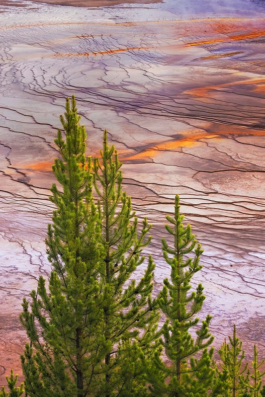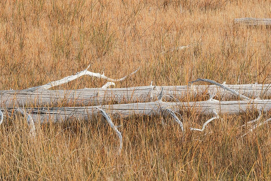 Fallen calcified trees near Grand Prismatic spring-Yellowstone National Park-Wyoming White Modern Wood Framed Art Print with Double Matting by Jones, Adam