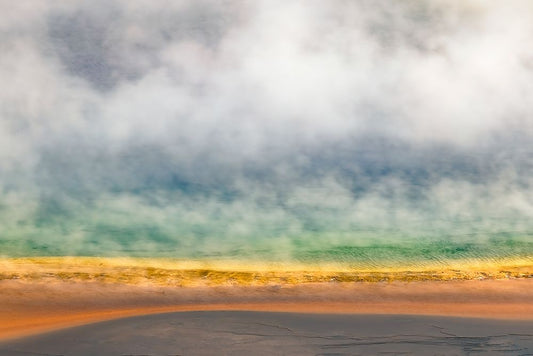 Elevated view of runoff water and bacterial mat-Grand Prismatic spring White Modern Wood Framed Art Print with Double Matting by Jones, Adam