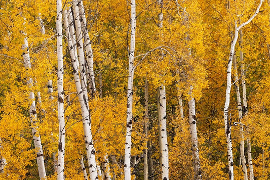 Pattern of white tree trunks among golden aspen leaves-Grand Teton National Park-Wyoming White Modern Wood Framed Art Print with Double Matting by Jones, Adam