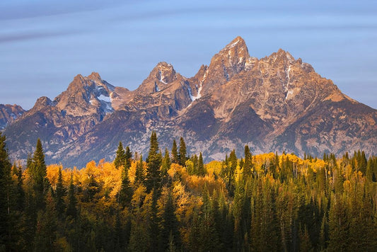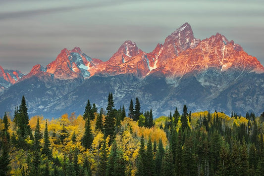 Autumn view of Teton Range at sunrise-Grand Teton National Park-Wyoming White Modern Wood Framed Art Print with Double Matting by Jones, Adam