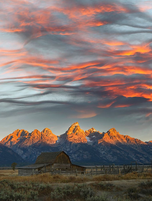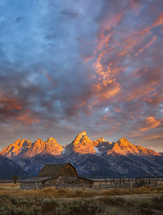 Historical Moulton barn at sunrise-Grand Teton National Park-Wyoming White Modern Wood Framed Art Print with Double Matting by Jones, Adam