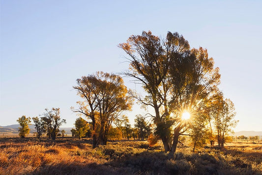Sunrise through cottonwood trees-Grand Teton National Park-Wyoming White Modern Wood Framed Art Print with Double Matting by Jones, Adam