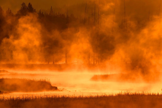 Madison River at sunrise-Yellowstone National Park-Wyoming White Modern Wood Framed Art Print with Double Matting by Jones, Adam