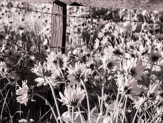 USA-Washington State Infrared capture of fence line and wildflowers White Modern Wood Framed Art Print with Double Matting by Eggers, Terry