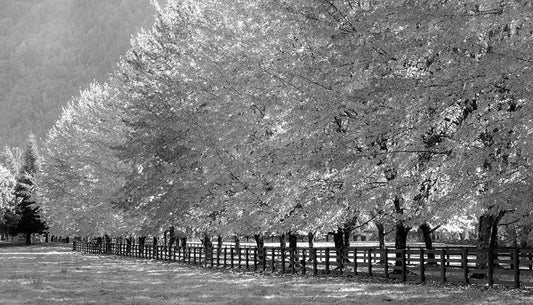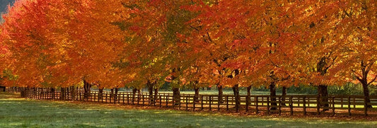 USA-Washington State-North Bend fence and tree lined driveway in fall colors White Modern Wood Framed Art Print with Double Matting by Gulin, Sylvia