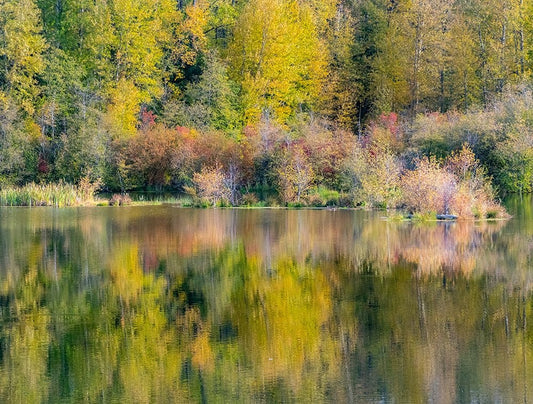 USA-Washington State-Easton and fall colors of Cottonwoods in small pond White Modern Wood Framed Art Print with Double Matting by Gulin, Sylvia