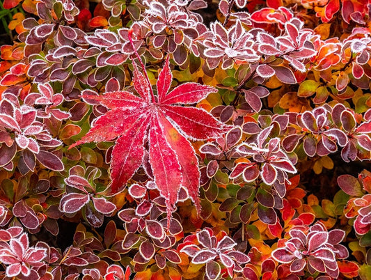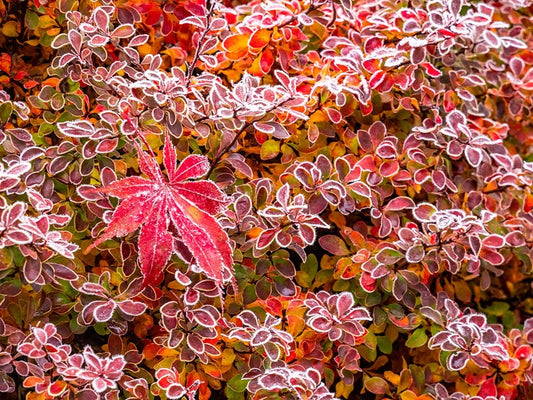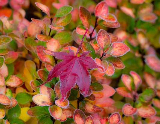USA-Washington State-Pacific Northwest Sammamish frost rimmed Barberry White Modern Wood Framed Art Print with Double Matting by Gulin, Sylvia