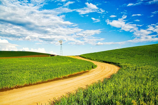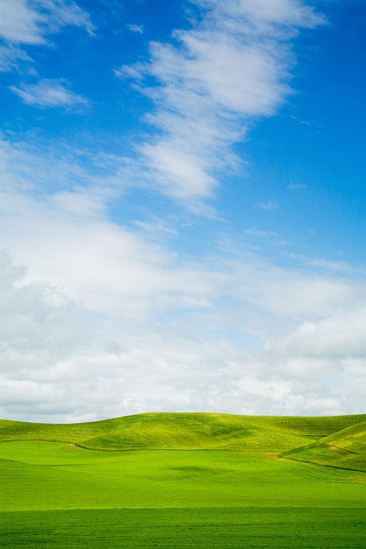 Winding backroad through Spring wheat fields-USA-Washington State-Palouse Region White Modern Wood Framed Art Print with Double Matting by Eggers, Terry