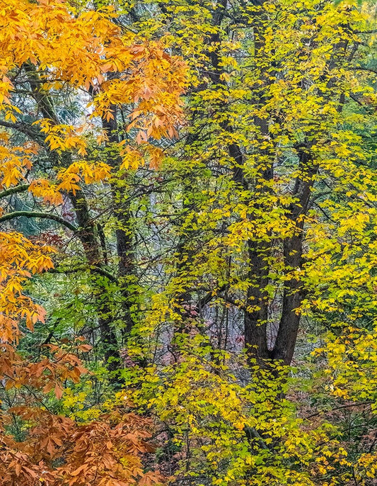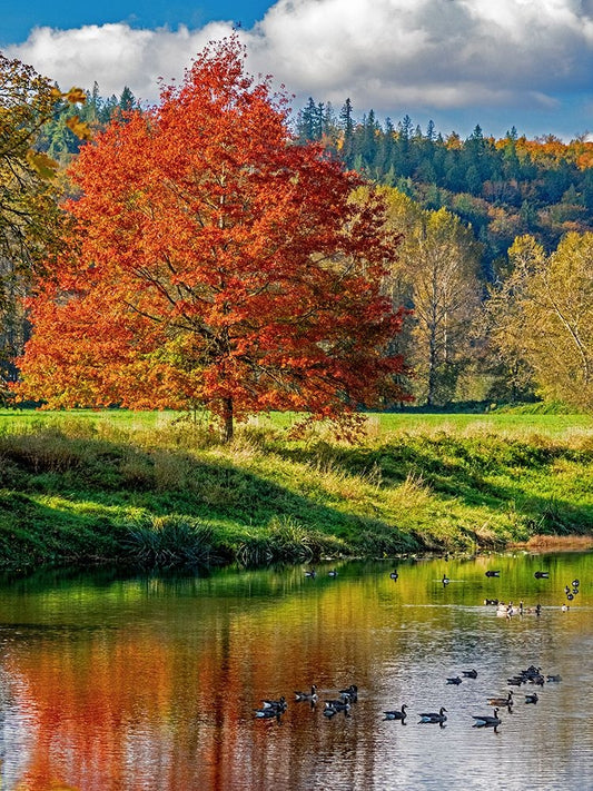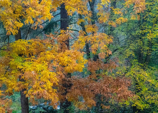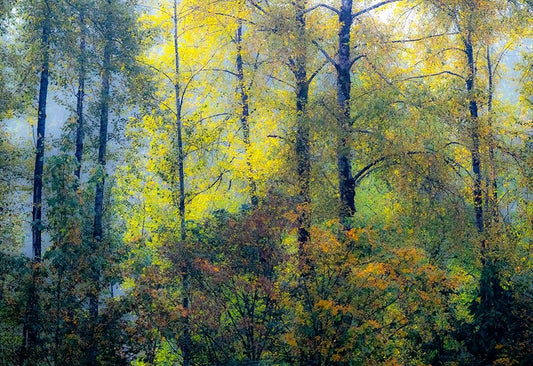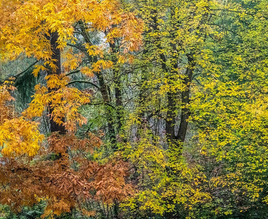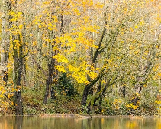 USA-Washington State-Snoqualmie River edged by Big Leaf Maple Trees in yellow White Modern Wood Framed Art Print with Double Matting by Gulin, Sylvia