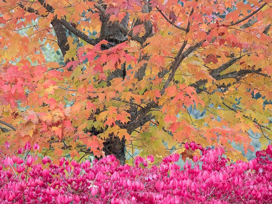 USA-Washington State-Easton and fall colors on Big Leaf Maple and Vine Maple White Modern Wood Framed Art Print with Double Matting by Gulin, Sylvia