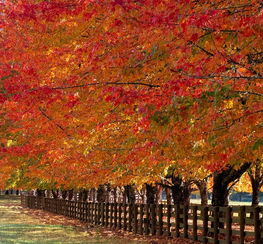 USA-Washington State-Issaquah with fall colored Maple trees along downtown roads White Modern Wood Framed Art Print with Double Matting by Gulin, Sylvia