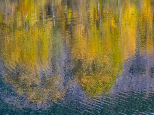 USA-Washington State-Easton and fall colors of Cottonwoods in small pond White Modern Wood Framed Art Print with Double Matting by Gulin, Sylvia