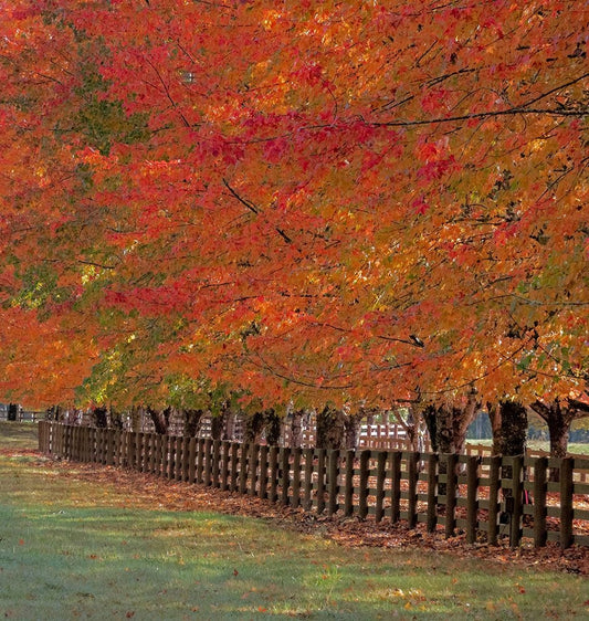 USA-Washington State-North Bend fence and tree lined driveway in fall colors White Modern Wood Framed Art Print with Double Matting by Gulin, Sylvia