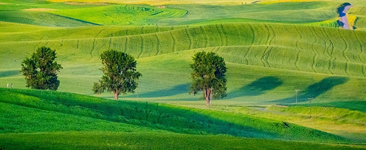 USA-Washington State-Palouse with three cottonwoods in field of green Winter Wheat White Modern Wood Framed Art Print with Double Matting by Gulin, Sylvia