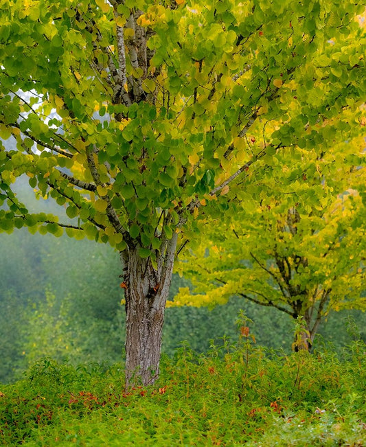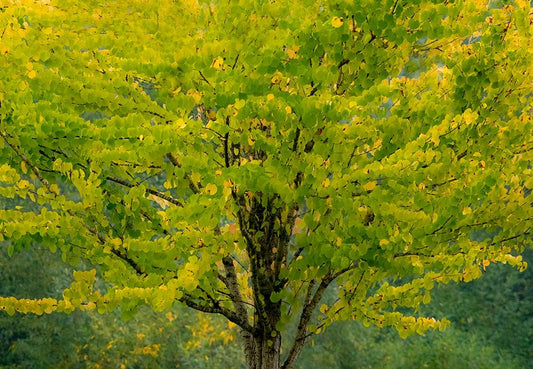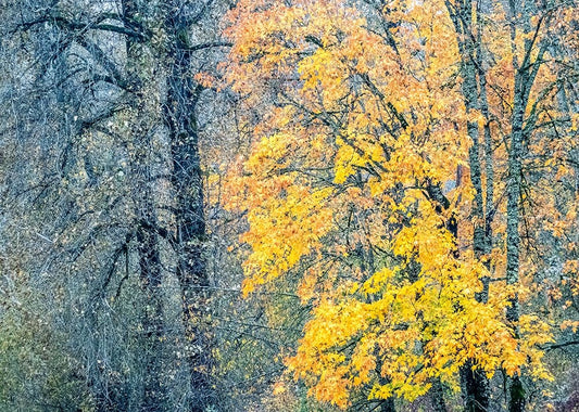 USA-Washington State-Bellevue alder tree golden/yellow fall colors White Modern Wood Framed Art Print with Double Matting by Gulin, Sylvia
