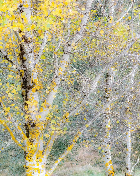 USA-Washington State-Bellevue birch trees with golden fall colors White Modern Wood Framed Art Print with Double Matting by Gulin, Sylvia