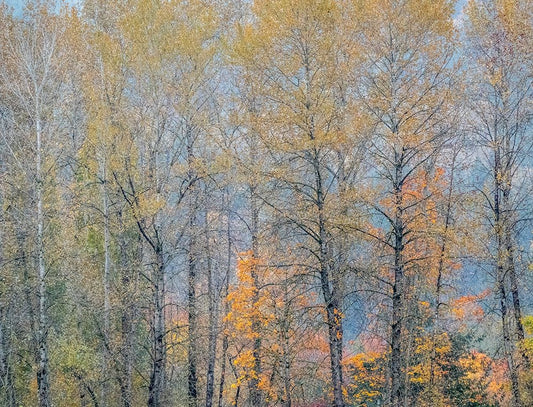 USA-Washington State-Preston-Cottonwoods and Big Leaf Maple trees in fall colors White Modern Wood Framed Art Print with Double Matting by Gulin, Sylvia