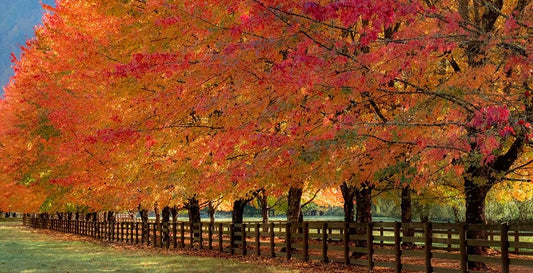 USA-Washington State-North Bend fence and tree lined driveway in fall colors White Modern Wood Framed Art Print with Double Matting by Gulin, Sylvia