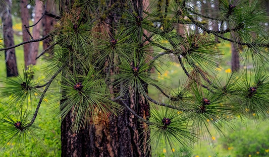 USA-Washington State-Table Mountain eastern Cascade Mountains yellow lichen on Ponderosa Pine White Modern Wood Framed Art Print with Double Matting by Gulin, Sylvia