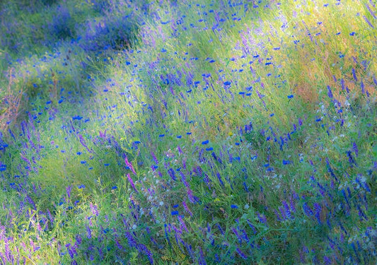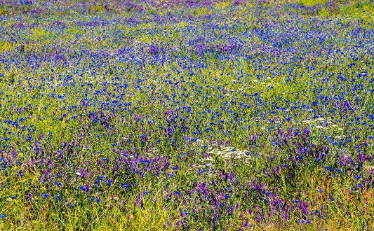 USA-Washington State-Palouse and field of blue bachelor buttons flowering White Modern Wood Framed Art Print with Double Matting by Gulin, Sylvia