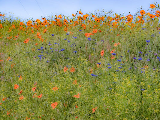 USA-Washington State-Palouse springtime with red poppies and bachelor buttons White Modern Wood Framed Art Print with Double Matting by Gulin, Sylvia