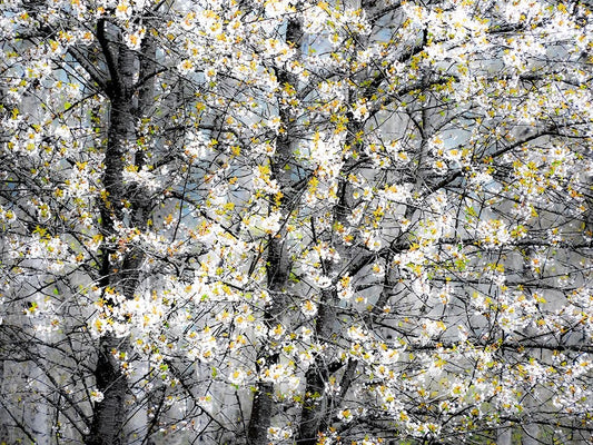 USA-Washington State-Pacific Northwest-Fall City springtime and flowering wild Cherry White Modern Wood Framed Art Print with Double Matting by Gulin, Sylvia