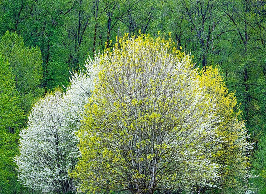 USA-Washington State-Carnation early spring and trees just budding out White Modern Wood Framed Art Print with Double Matting by Gulin, Sylvia