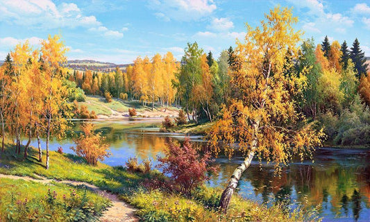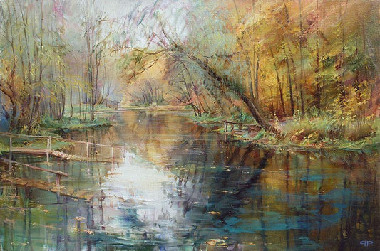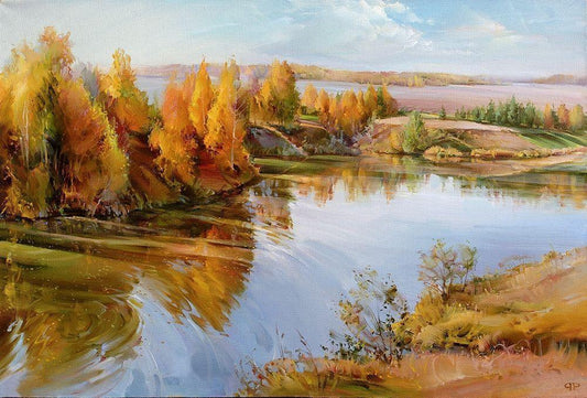 Autumn day White Modern Wood Framed Art Print with Double Matting by Prishchepa, Igor