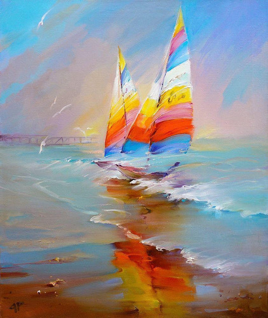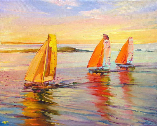 Sails White Modern Wood Framed Art Print with Double Matting by Romanov, Roman