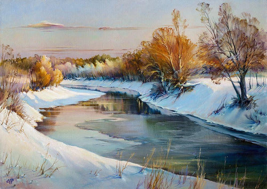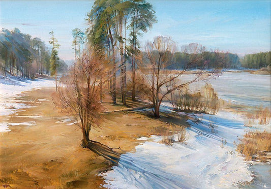 Winter lake White Modern Wood Framed Art Print with Double Matting by Romanov, Roman