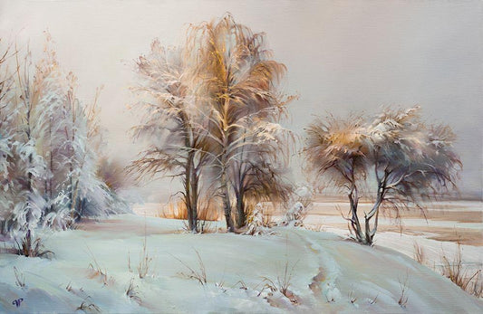 Winter day White Modern Wood Framed Art Print with Double Matting by Romanov, Roman