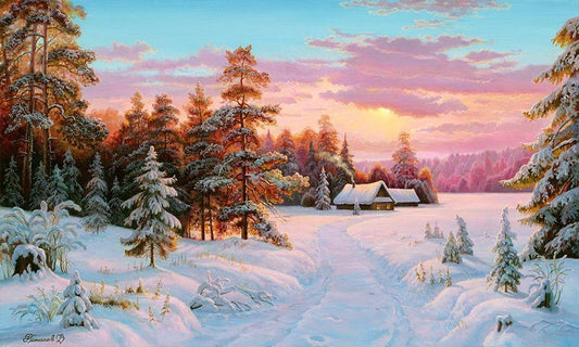Winter evening White Modern Wood Framed Art Print with Double Matting by Romanov, Roman