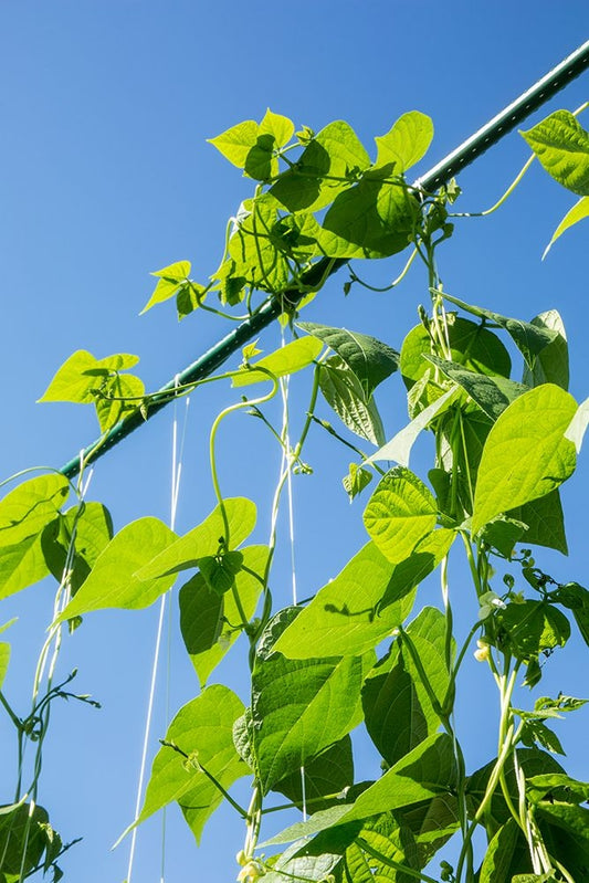 Bellevue-Washington State-USA Super Marconi pole beans growing on a trellis White Modern Wood Framed Art Print with Double Matting by Horton, Janet