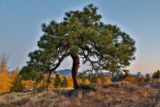 USA- Washington State- Winthrop- Sun Mountain and lone pine tree White Modern Wood Framed Art Print with Double Matting by Gulin, Darrell