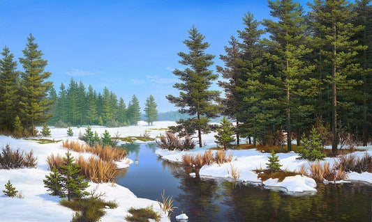 Pine forest winter White Modern Wood Framed Art Print with Double Matting by Basov, Sergej