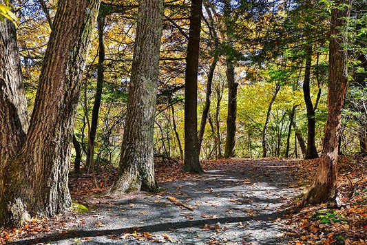 USA-Vermont-Fall foliage in Mad River Valley along trail to Warren Falls White Modern Wood Framed Art Print with Double Matting by Jones, Allison