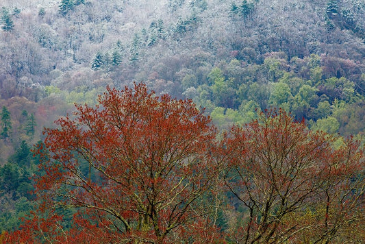 USA- Tennessee. Great Smoky Mountains National Park with late springtime snow White Modern Wood Framed Art Print with Double Matting by Gulin, Darrell