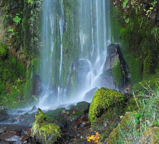 Oregon-Columbia River Gorge National Scenic Area-Latourell Falls and Big Leaf Maple trees White Modern Wood Framed Art Print with Double Matting by Wild, Jamie and Judy