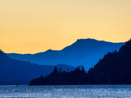 Oregon-Columbia River Gorge National Scenic Area-Columbia River and Gorge Peaks at sunset White Modern Wood Framed Art Print with Double Matting by Wild, Jamie and Judy