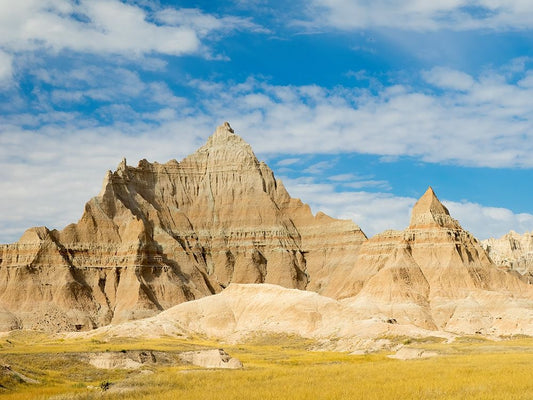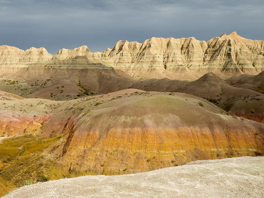 South Dakota- Badlands National Park. Badlands rock formations- Yellow Mounds White Modern Wood Framed Art Print with Double Matting by Wild, Jamie and Judy