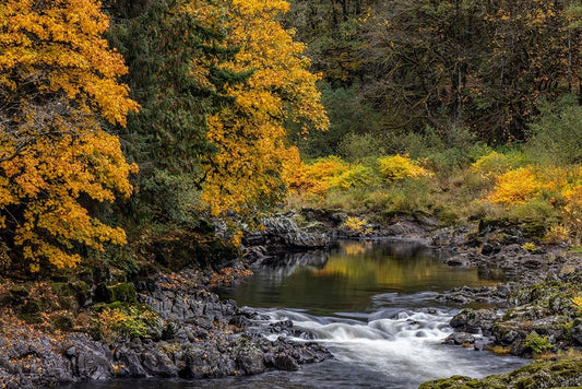 Fall color along the Nehalem River in the Tillamook State Forest-Oregon-USA White Modern Wood Framed Art Print with Double Matting by Haney, Chuck