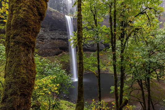 South Falls at Silver Falls State Park near Sublimity-Oregon-USA White Modern Wood Framed Art Print with Double Matting by Haney, Chuck